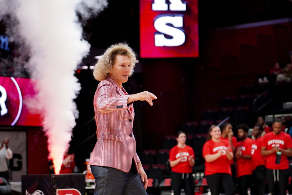 November 13, 2022, Piscataway, New Jersey, USA: Rutgers Women s basketball all-time leading scorer, SUE WICKS, walks on to the court to be honored before the Rutgers Scarlet Knights versus the NJIT Highlanders game at the Jersey Mike s Arena in Piscataway, New Jersey. Piscataway USA - ZUMAp109 20221113_zaf_p109_027 Copyright: xJoelxPlummerx