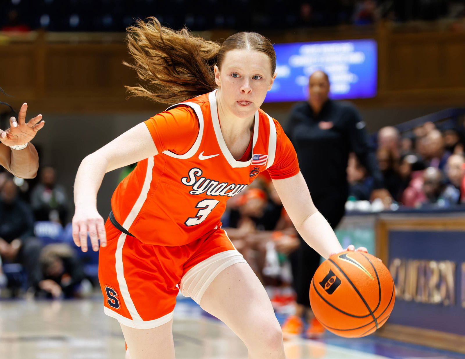 February 23, 2025, Durham, North Carolina, USA: OLIVIA SCHMITT 3 dribble. Duke University Blue Devils hosted Syracuse Orange Women s Basketball at Cameron Indoor Stadium in Durham NC Durham USA - ZUMAj177 20250223_zsp_j177_006 Copyright: xJasonxJacksonx